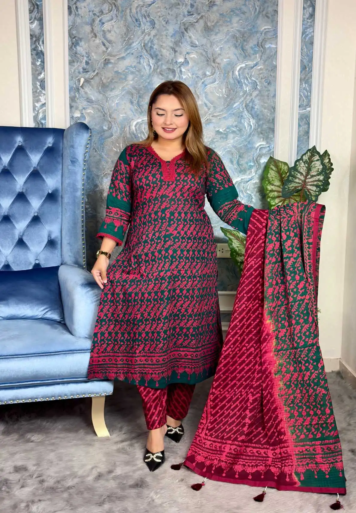 আনস্টিচ প্রিমিয়াম কটন বেক্সি বাটিক থ্রি-পিস জামা + ওড়না + প্যান্ট (BB-1)